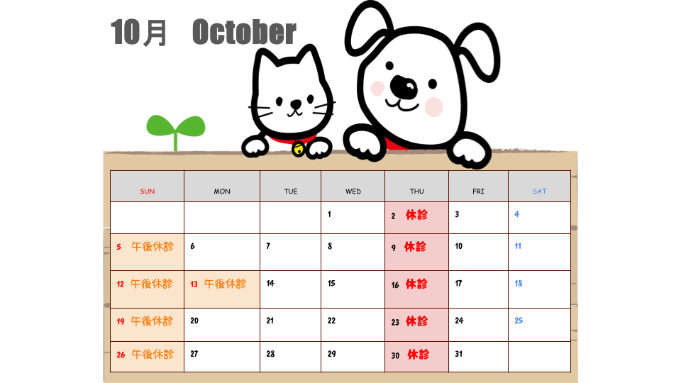 10月13日(月)はスポーツの日のため午前のみの診察となります。