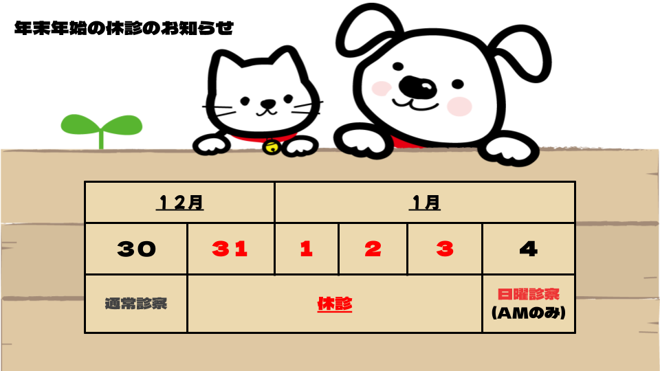 そして年末・年明けは診察が大変混みやすくなっております。早めのご予約をお願いいたします。