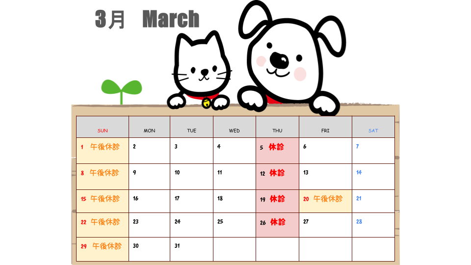 3月は20日(水)は春分の日のため午前のみの診察となります。